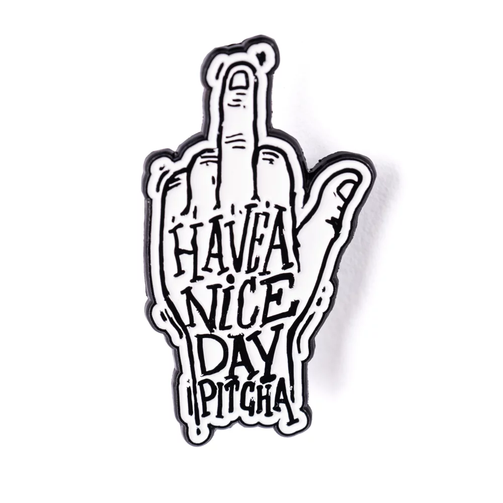 metal badge Pitcha NICE DAY white Full description