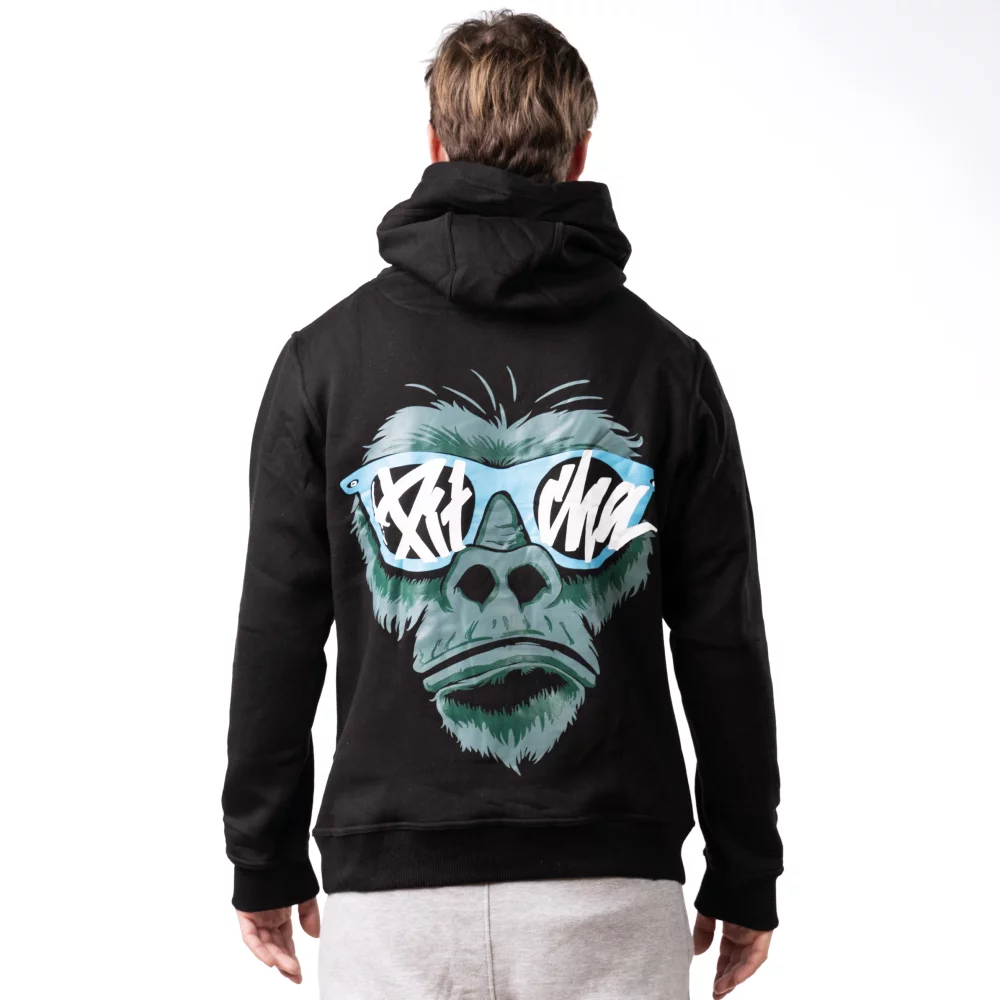 unisex Pitcha GORILLA hoodie with hood and pockets on the front. In Pitcha, but in style - because this hoodie has balls and design you won't find anywhere else. Full description