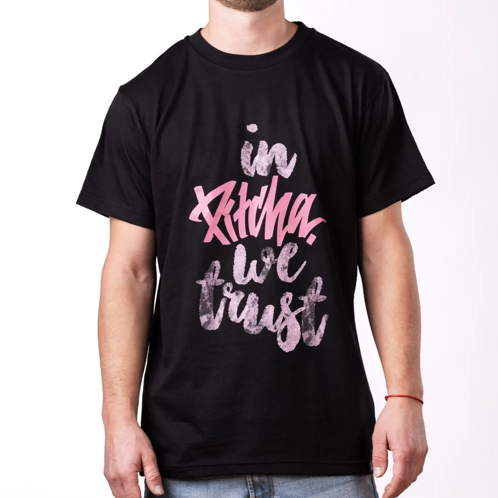Pitcha TRUSTER - a belief you have to earn. On the front, a simple, almost ritualistic phrase: IN PITCHA WE TRUST. Full description